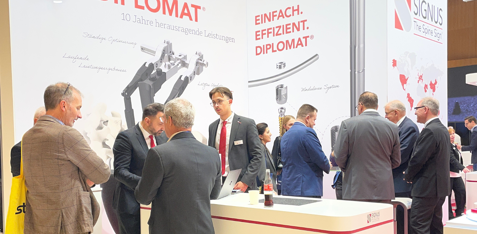 Trotz der kleineren Standfläche war der SIGNUS Stand während des gesamten Kongresses lebendig und gut besucht. Zahlreiche Fachleute nutzten die Gelegenheit, sich über Lösungen in der Wirbelsäulenchirurgie zu informieren, bestehende Kontakte zu vertiefen und neue Verbindungen zu knüpfen.